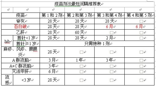 《接种程序推荐表》及《疫苗剂次最短间隔推荐表》