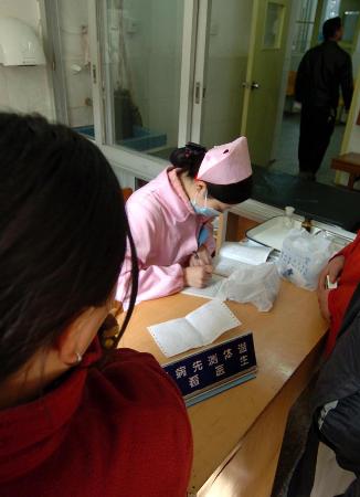 | 湖南省儿童医院感染科护士在分诊室为患者登记 新华社记者 赵众志 摄