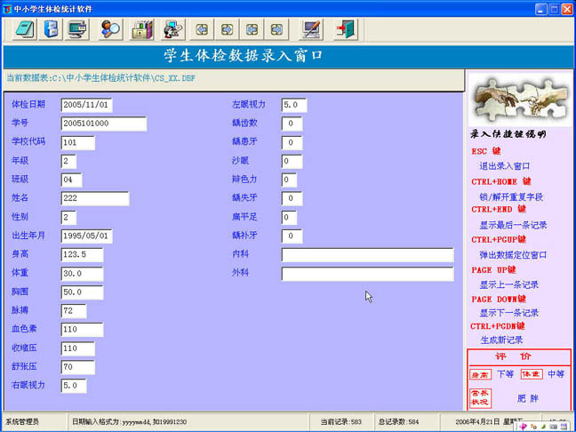 学生体检统计软件(附:新增生体检数据录入教程录像)