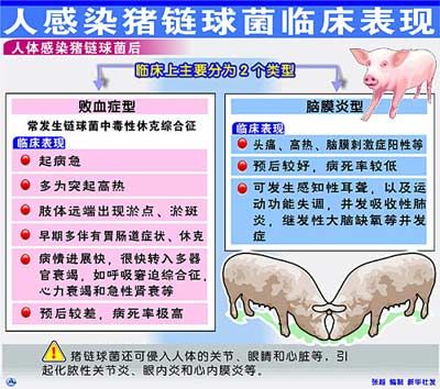 一旦身体出现发热等不适时,市民要及时到医院就诊,如怀疑感染猪链球菌,应向医生说明是否曾接触过生猪肉。