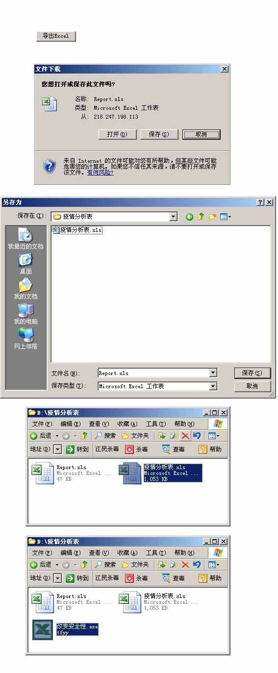 导出Report.xls到与本文件相同文件夹(存到同一处,能一起看到)。