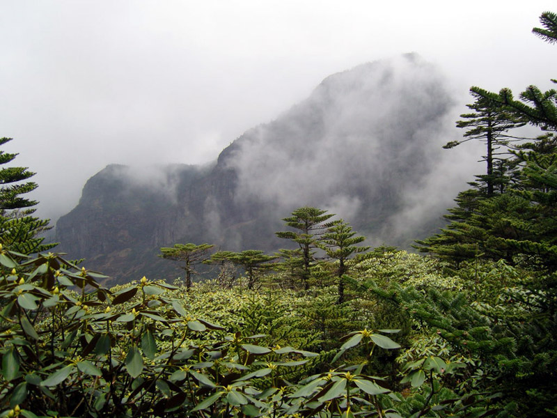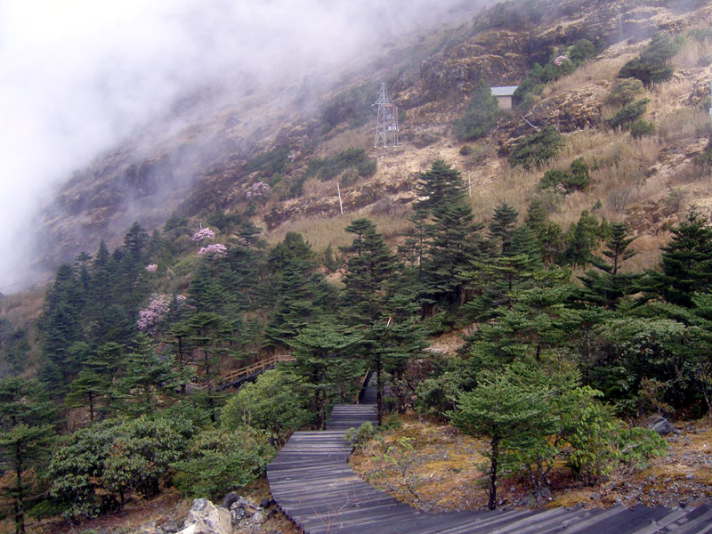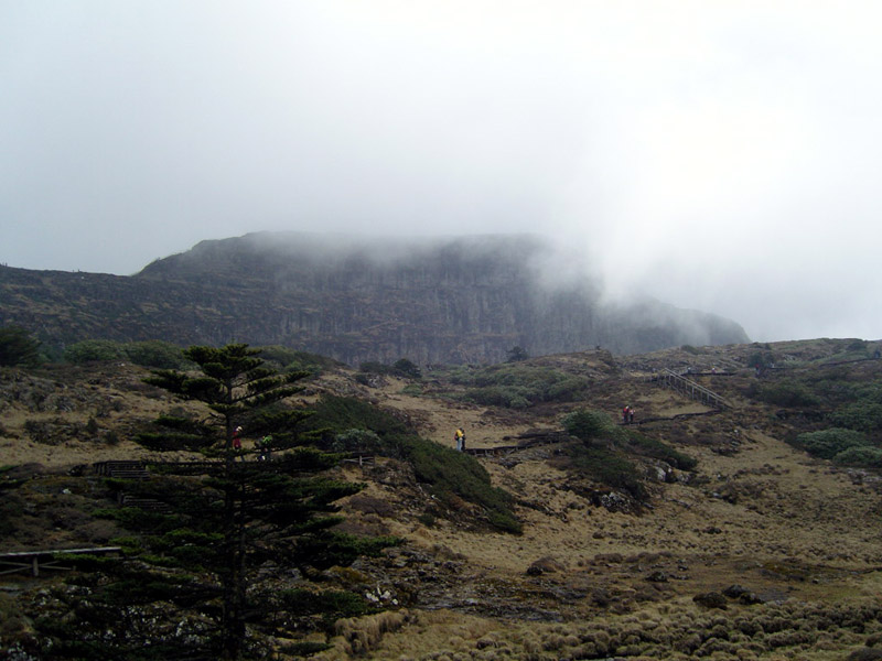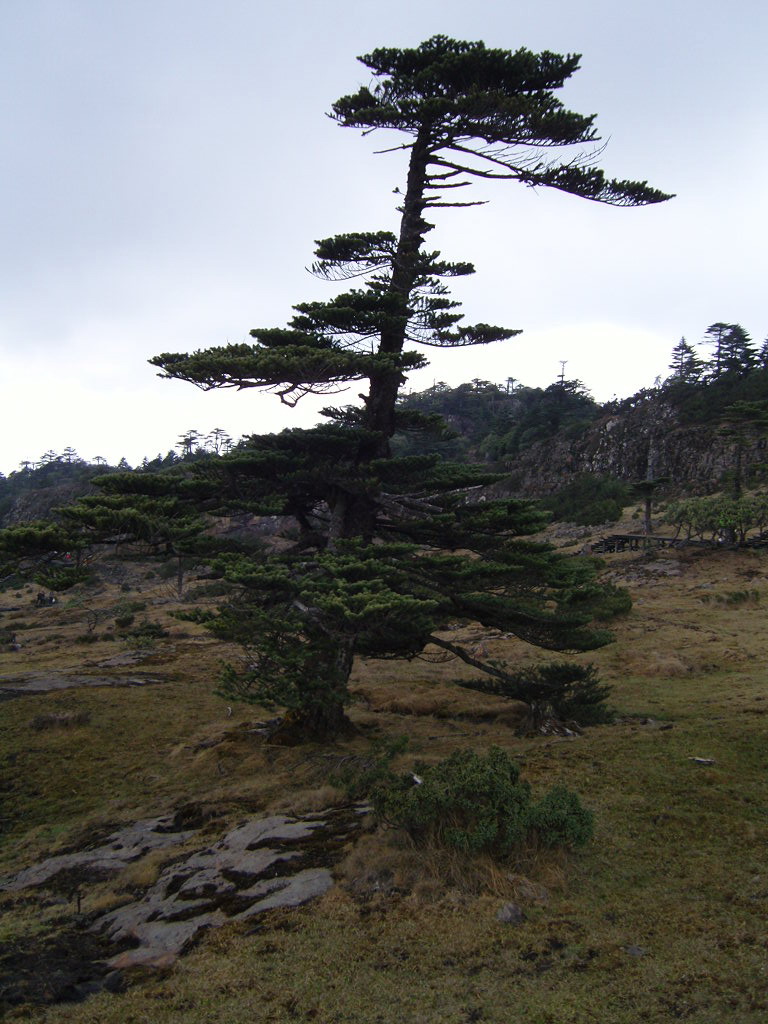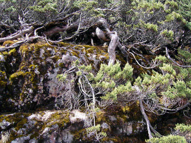 山顶难得见的高树。因为海拔很高所以树要生存下去只有适应,大多数的树木都是趴在地上的。