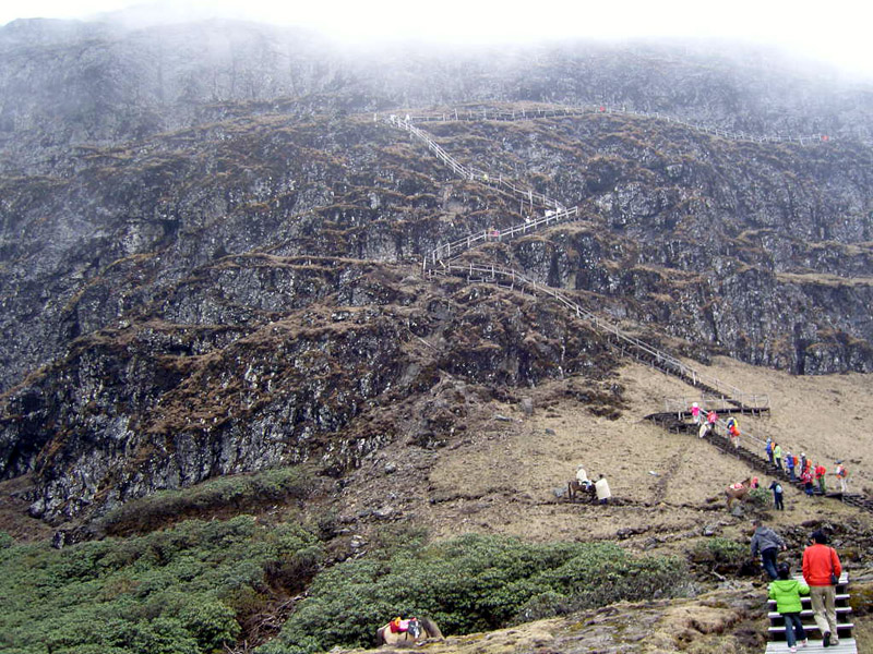 顺着木阶就可以走到所有的景点,这木阶和地面有一定的距离,保护植被不被伤害吧