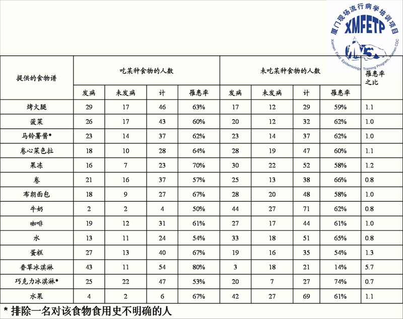 我觉得应该使用回顾性病例对照调查,用OR值替代RR值,来推断暴露与发病的联系强度,据图标看香草冰淇淋可能性大,因其OR值为5.7,再用统计学检验来检验暴露者与未暴露者之间有无显著性差异,并不能依据OR值或RR值来确定有无因果关系。