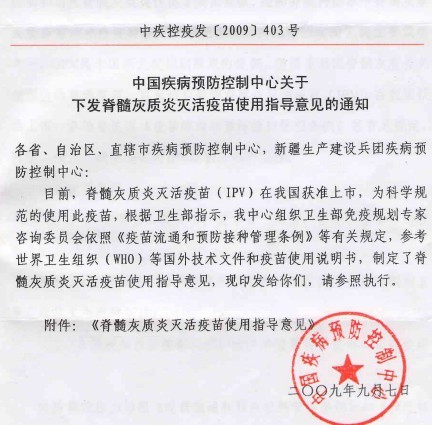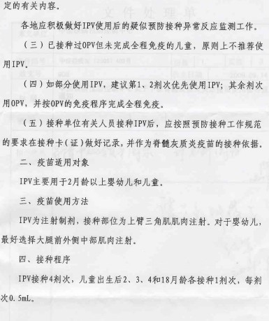 下发脊髓灰质炎灭活疫苗使用指导意见的通知