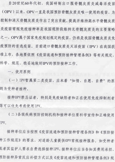 (一)IPV暂属第二类疫苗,应本着“知情、自愿、自费”的原则为受种者接种。