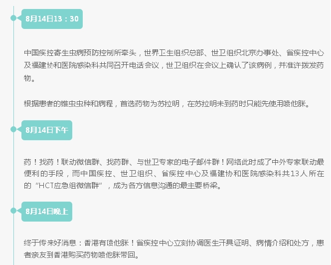 8月14日上午9时20分,黄女士血样被送到省疾控中心,检验人员从血样中检出非洲锥虫。8月16日下午,中国疾控确定为罗得西亚非洲锥虫。