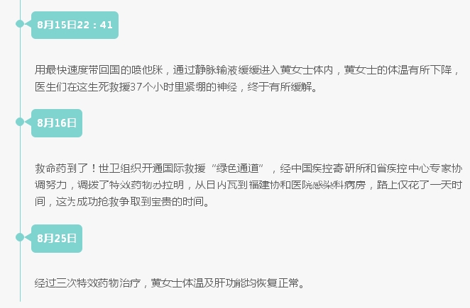 福州黄女士于7月22日至8月6日期间,前往肯尼亚和坦桑尼亚等地旅游,回到福州后,却莫名其妙地出现反复发热、头晕、畏冷、寒战等症状。