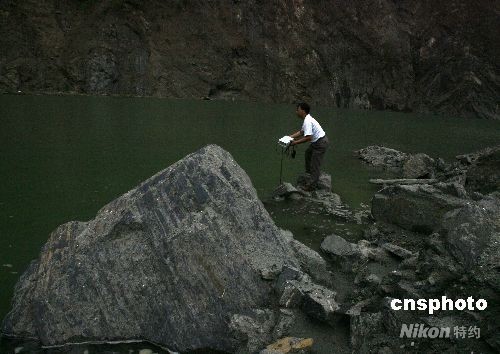 汶川大地震发生以来,水利地质人员乘直升飞机降落到北川的唐家山堰塞湖,测量水位上涨危情。一座大山的崩塌堵塞河道形成这座危险的堰塞湖,如果溃堤将对北川全县造成重大威胁。