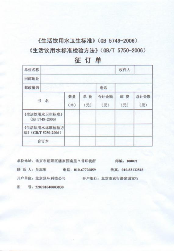 生活饮用水新标准征订通知
