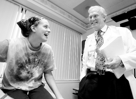 已经痊愈的漂亮女孩珍纳·吉斯与她的主治医生在一起