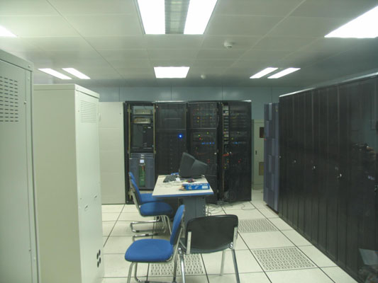 四楼信息中心机房,老师说可以照,我们就没客气地按下了快门,最里面的就是机柜所在地,