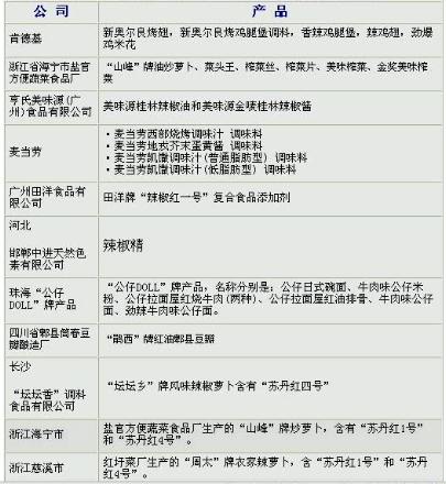 苏丹红食品名单(转载)
