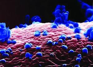 据新华社消息一串蓝色小球正在攻击健康的粉色细胞。瑞典《每日新闻报》6日登出的这组高解析度特写照片,是H5N1型禽流感病毒首次在媒体面前亮相。这些高清晰照片为科技摄影师伦纳特·尼尔松利用高倍电子扫描显微镜摄制而成。据悉,尼尔松从世界卫生组织取得病毒样本,把样本带到斯德哥尔摩的卡罗琳医学院培育。病毒样本源自两年前死于禽流感的一对中国香港父女。