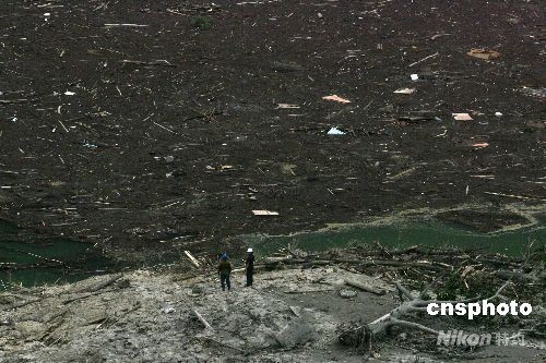 汶川大地震发生以来,水利地质人员乘直升飞机降落到北川的唐家山堰塞湖,测量水位上涨危情。一座大山的崩塌堵塞河道形成这座危险的堰塞湖,如果溃堤将对北川全县造成重大威胁。