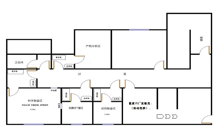 在原有实验室基础上改造,请帮忙看看流程与布局设计是否合理,能否满足PCR实验室与实验室生物安全要求?